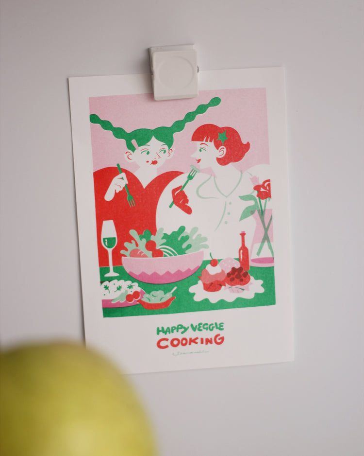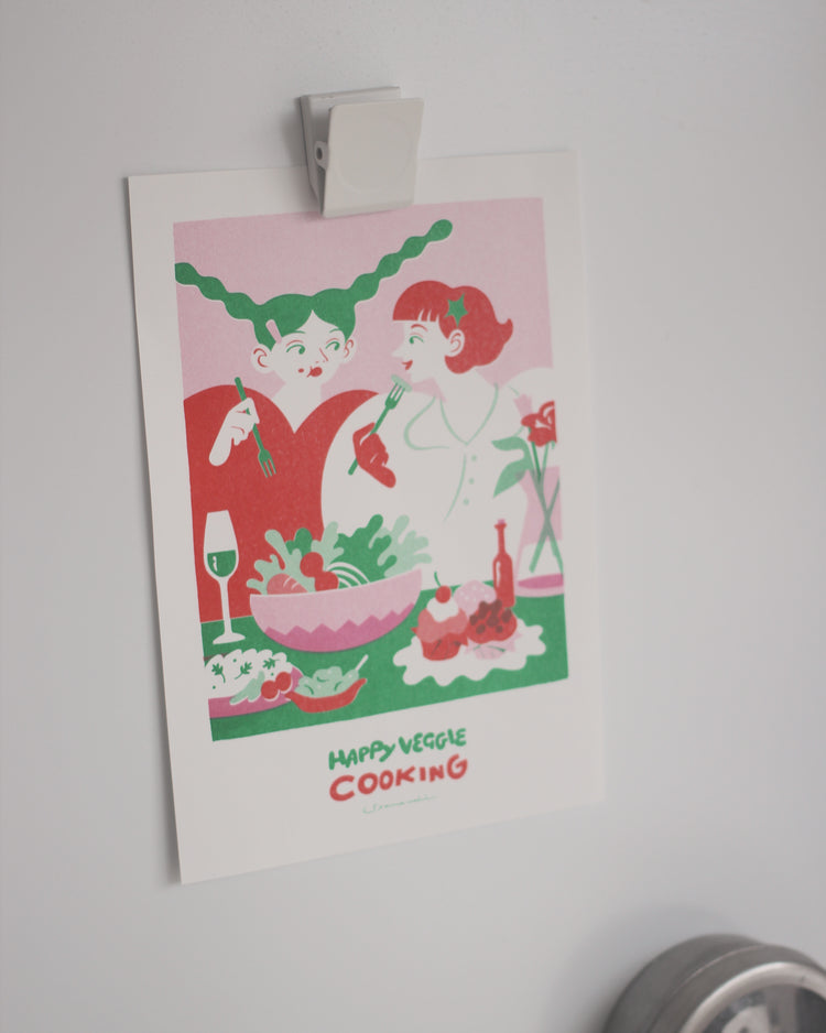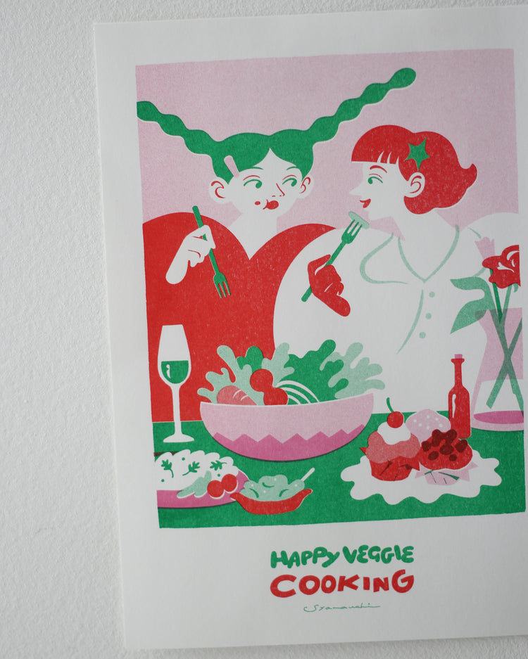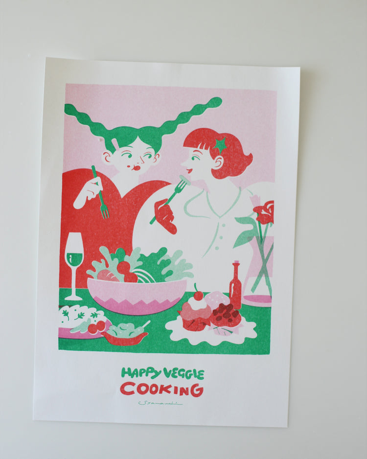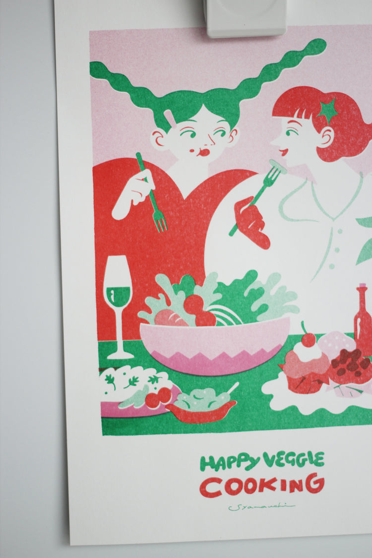 HAPPY VEGGIE COOKING! 冷蔵庫に貼ればお料理が楽しくなる。キッチン用ポスター。
