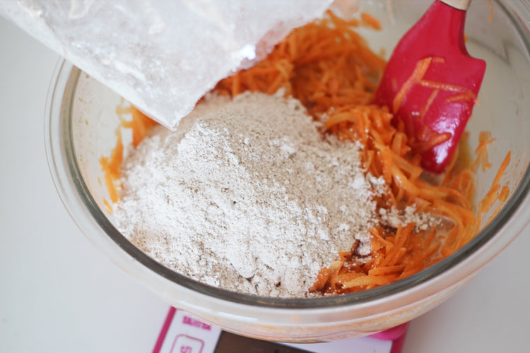 九州産の全粒粉小麦粉に、こだわりスパイスをブレンドした便利なミックスパウダーで、本格的なキャロットケーキを手軽に焼いてみませんか?初めてキャロットケーキを焼く方にもおすすめです。