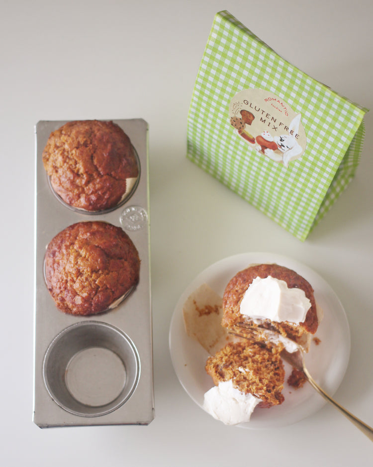 カンタン!スピーディー!ヘルシー!キャロットケーキ偏愛家uraraのこだわり研究で生まれた、グルテンフリーのケーキミックス。はじめてマフィンやキャロットケーキを焼く方でもおいしいキャロットケーキを焼くことができます。