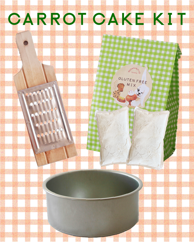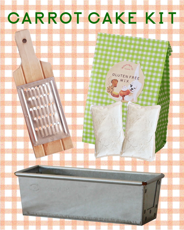内容物: ①キャロットケーキミックス(150g)×2袋 ②好みのケーキ型 ③しりしり器 |