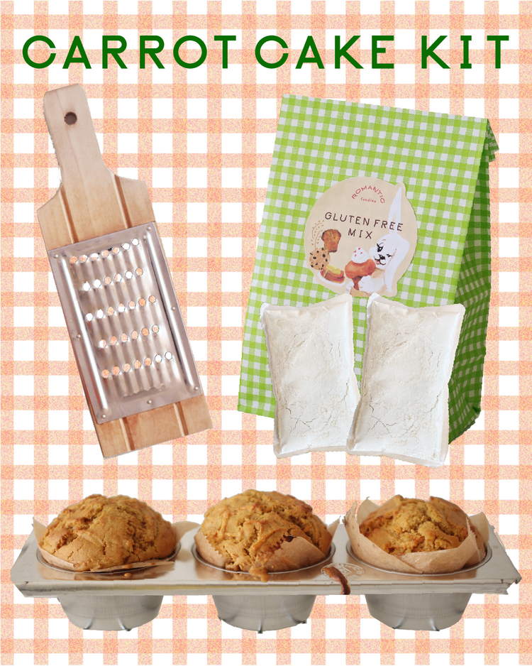 キャロットケーキ偏愛家の「こだわり」レシピを「カンタン」に。お菓子作りに慣れない方でも、おいしいキャロットケーキを焼くことができるお得なキットです。