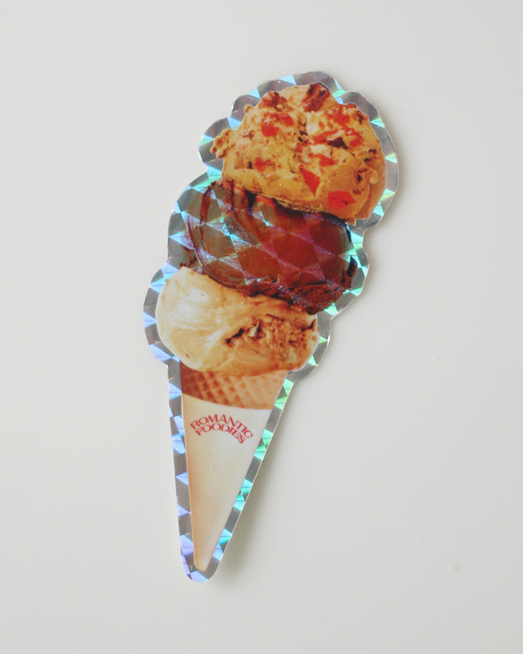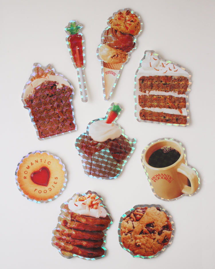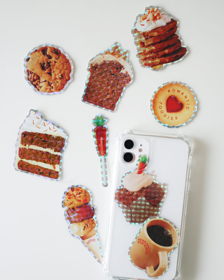 ホログラムきらめく、ステッカー。Romantic Foodiesだけのオリジナルデザイン。スマホケースにはさむのにもぴったりのサイズ。好きな味を集めよう。