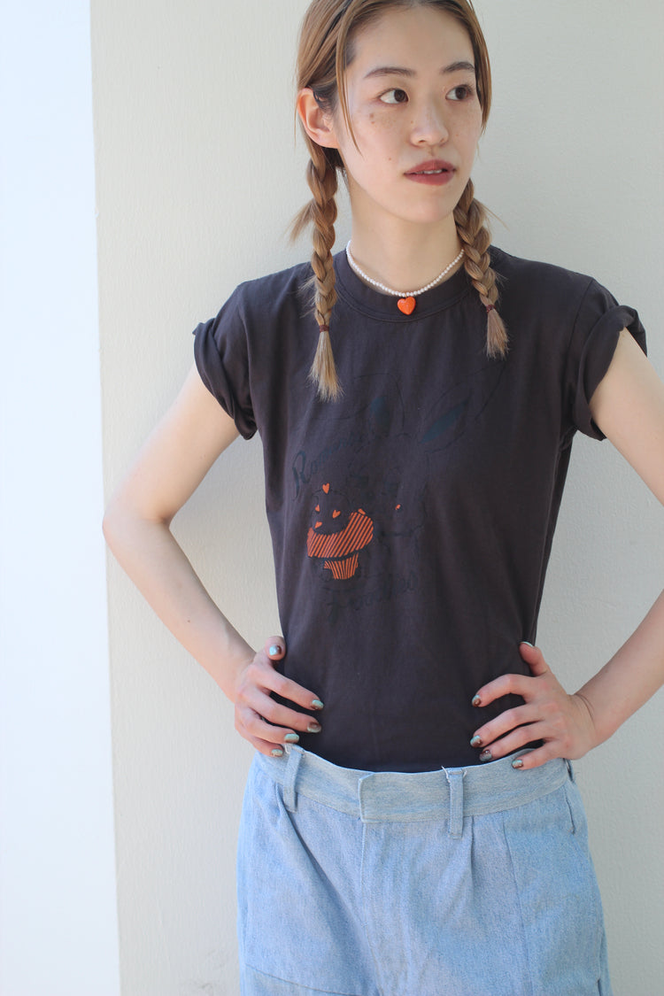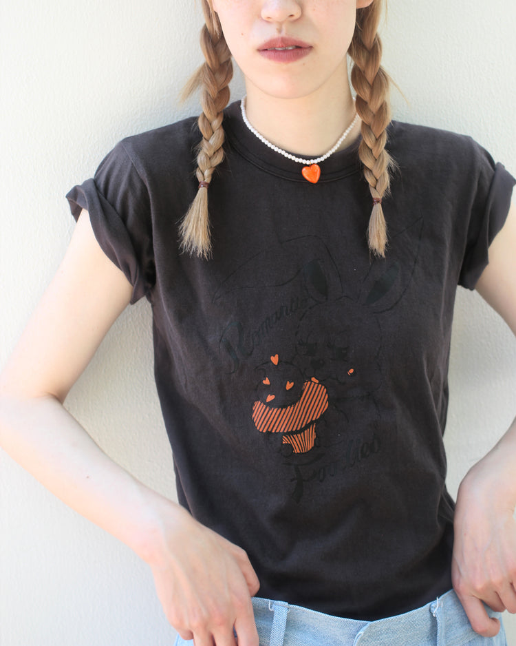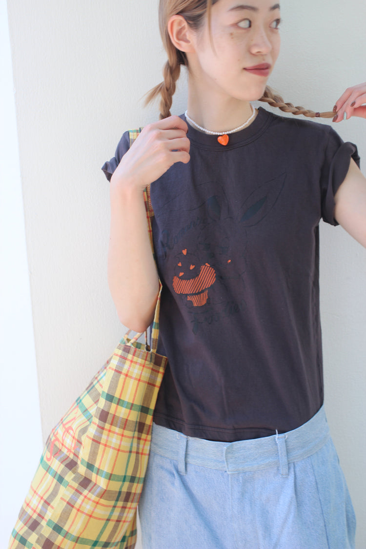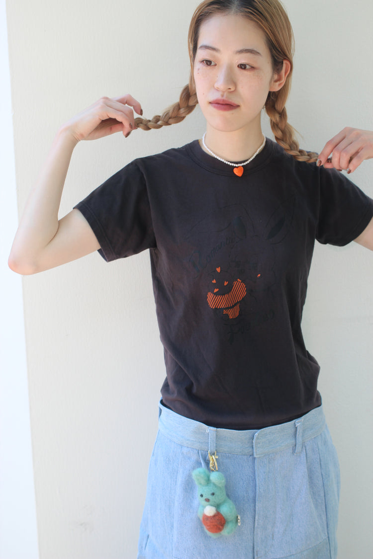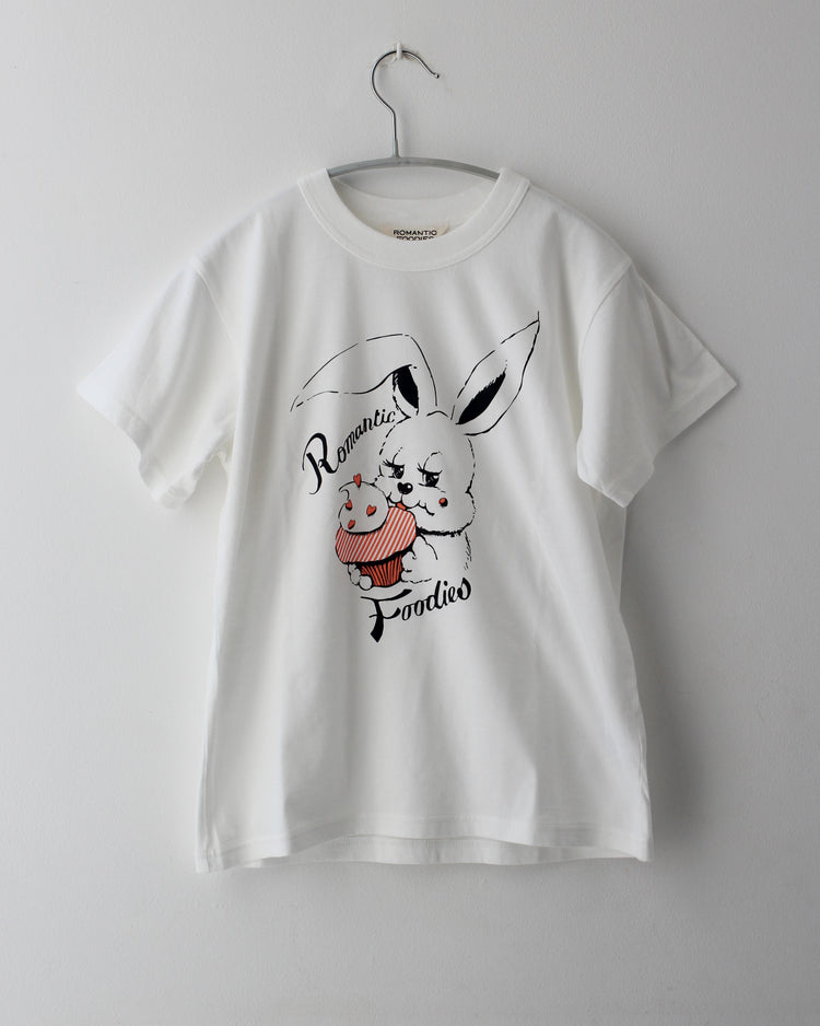 【限定Tシャツ】フロントにはうさぎのプリント、背中にハートの刺繍のワンポイントのオリジナルTシャツ。ほどよいフィット感ある着心地良いコットンTシャツです。