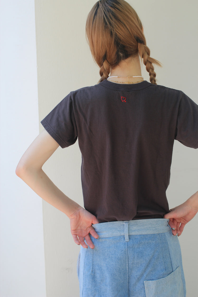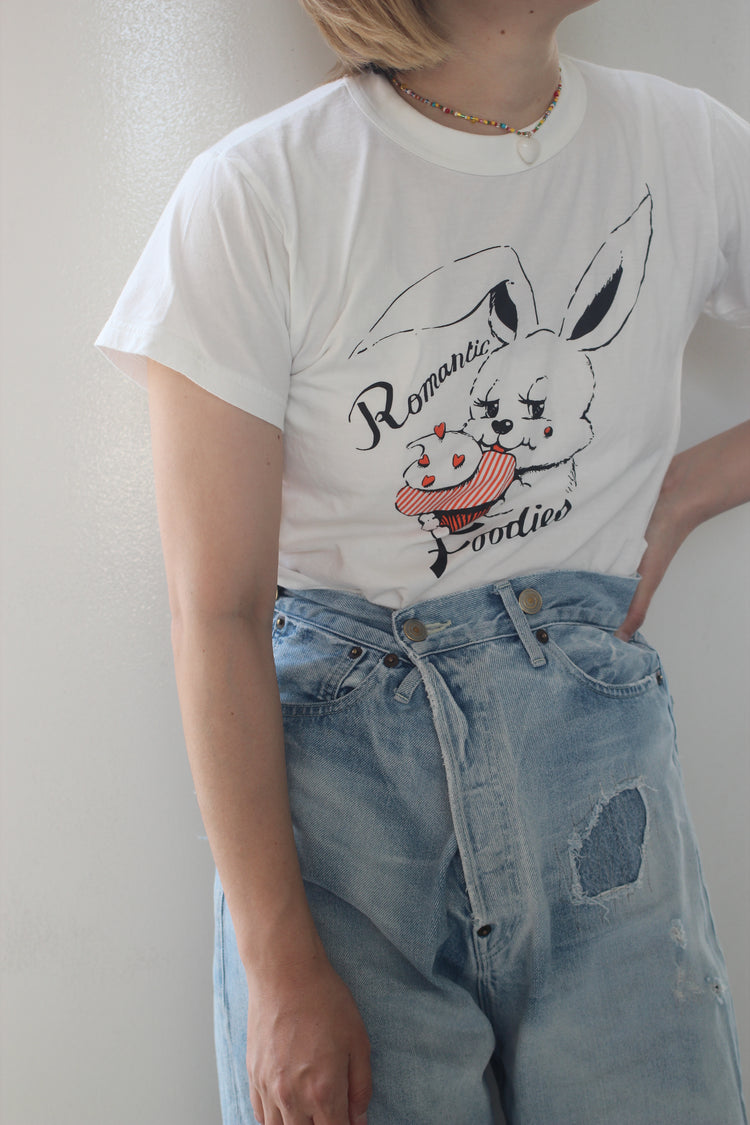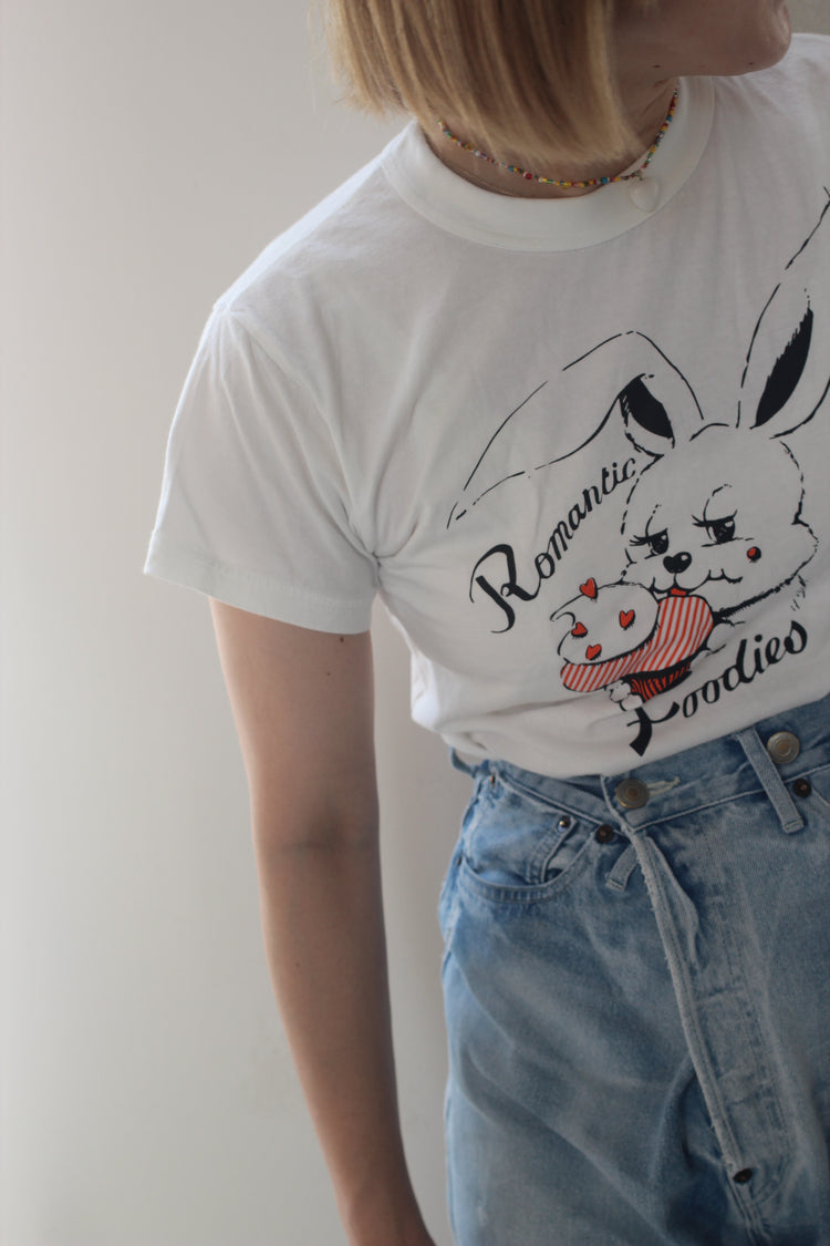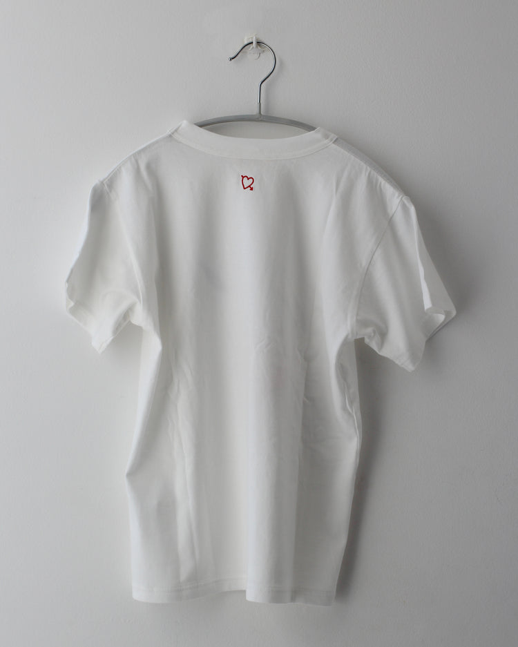 【限定Tシャツ】フロントにはうさぎのプリント、背中にハートの刺繍のワンポイントのオリジナルTシャツ。ほどよいフィット感ある着心地良いコットンTシャツです。