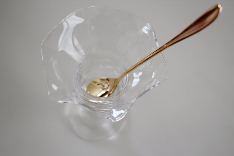 どこか懐かしい、レトロなフォルムが可愛らしいパフェグラス。しっかりした厚みと重みがあります。国内老舗ガラスメーカーによって作られた、高品質グラス。