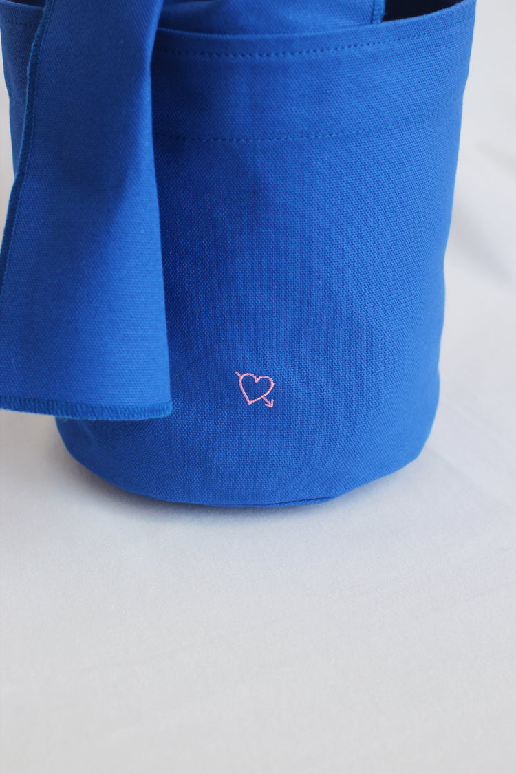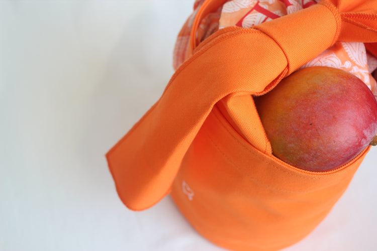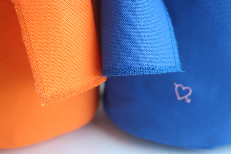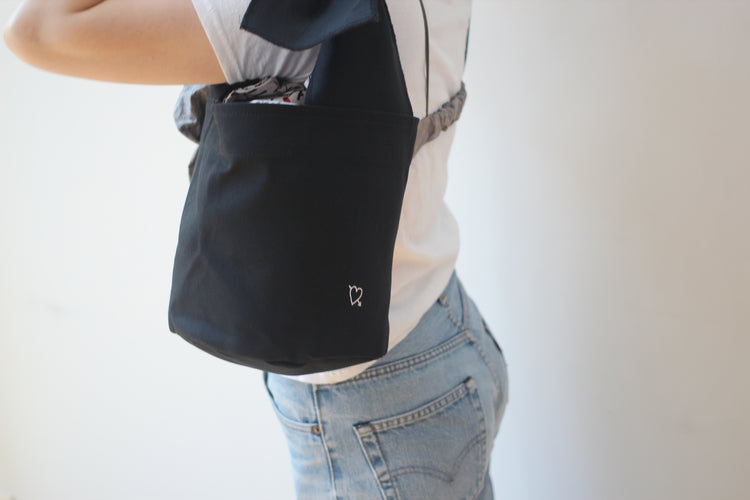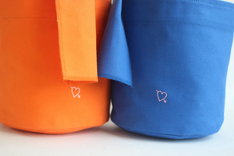 生地は「岡山県倉敷市産の8号帆布」を使用し、国内にて製造しています。厚手のしっかりした生地で、マチつきのたっぷりサイズ。ドリンクボトルたランチボックスなどもすっぽり入る大容量の実用デザインです。