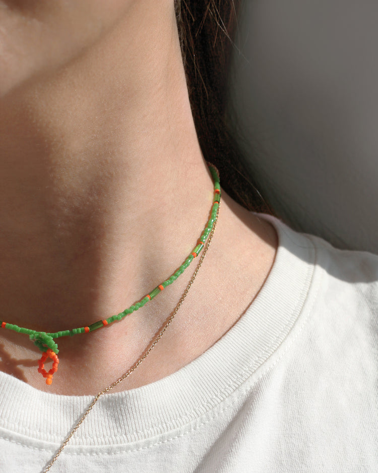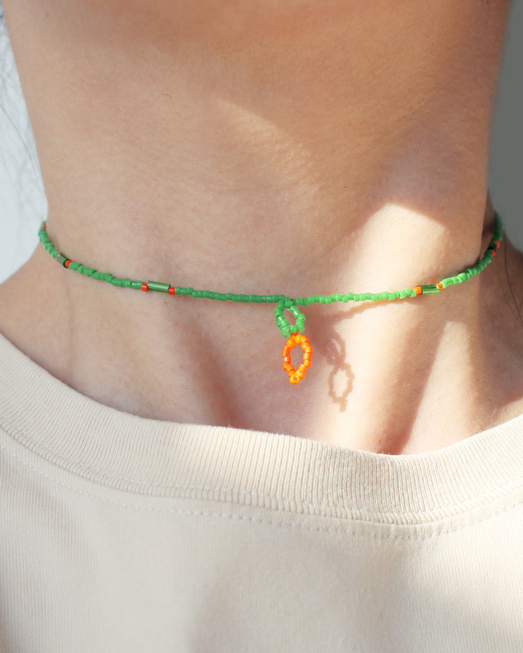 ポップなビタミンカラーで首元に遊びを込めて。華奢なデザインなので、シンプルなスタイルのアクセントにぴったり。短めのチョーカータイプです。(アジャスターで長さは調整可能)