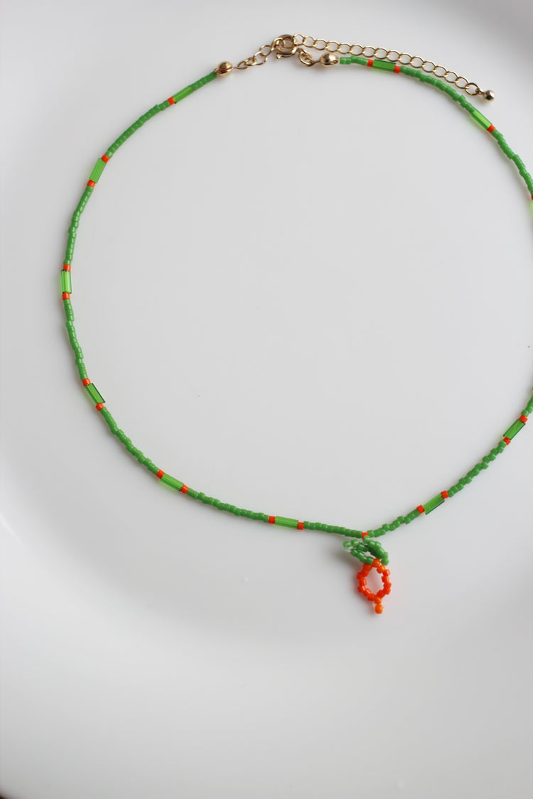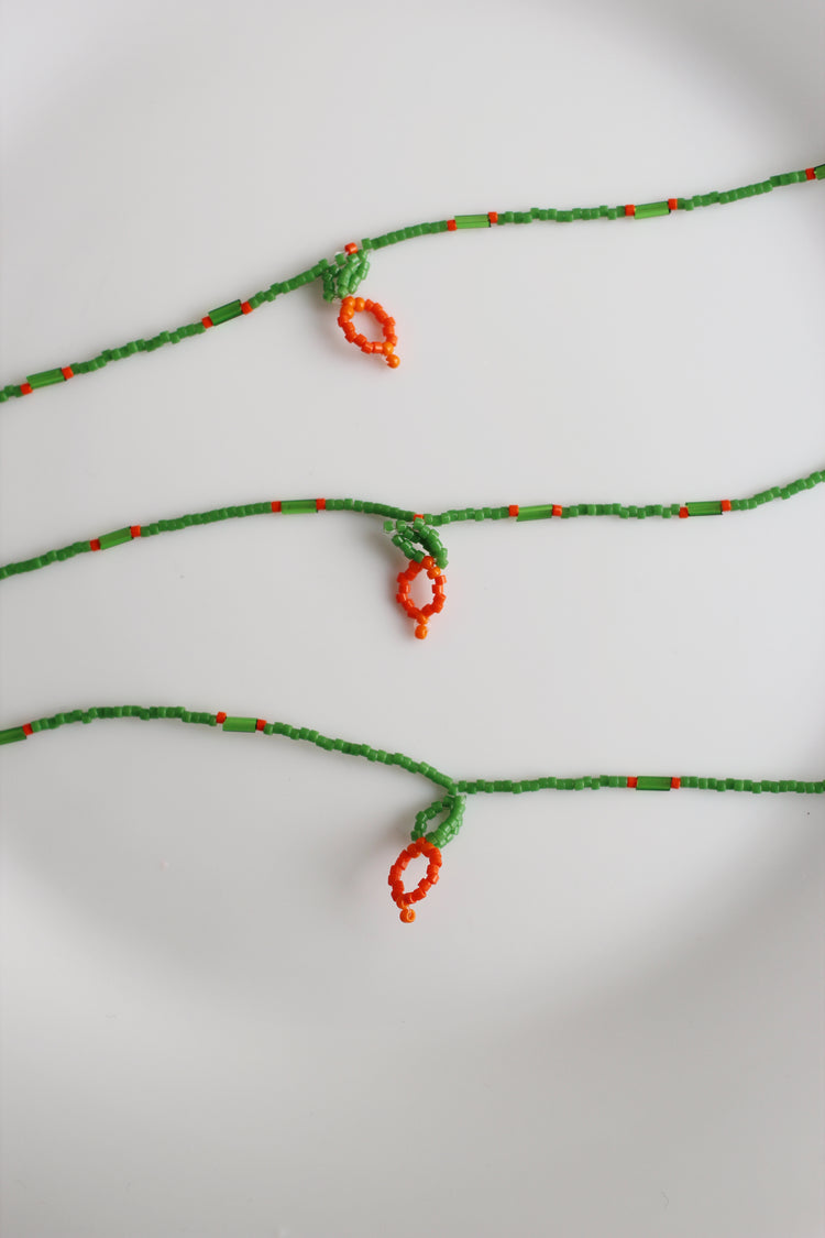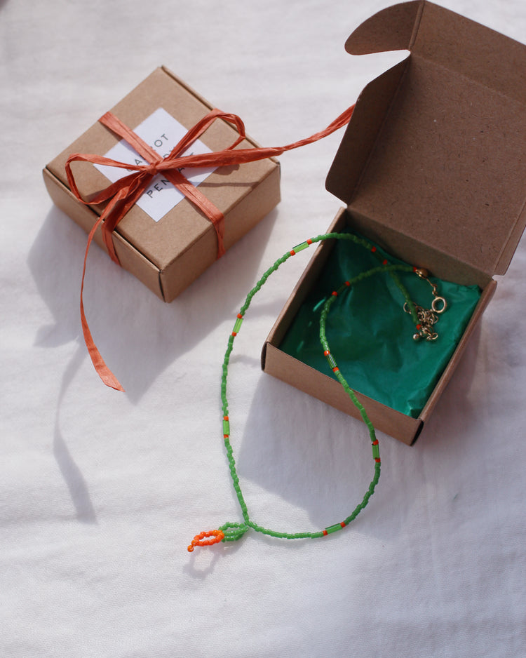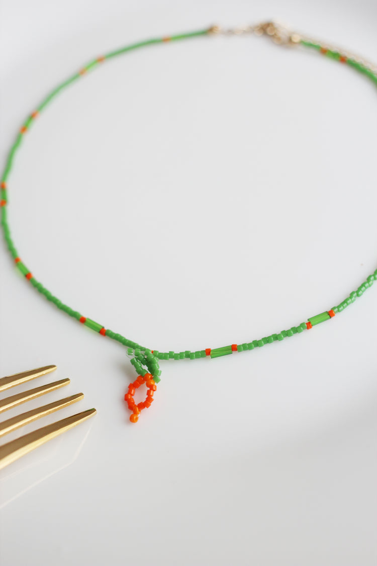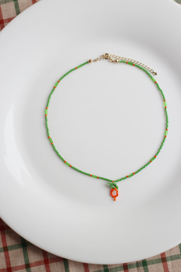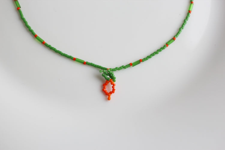 にんじんデザインのガラスビーズペンダント。