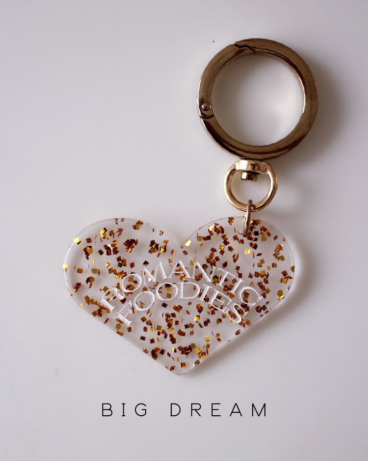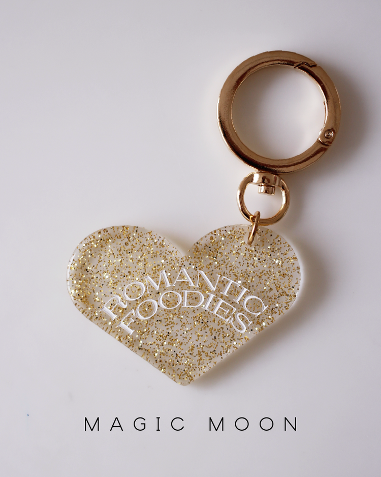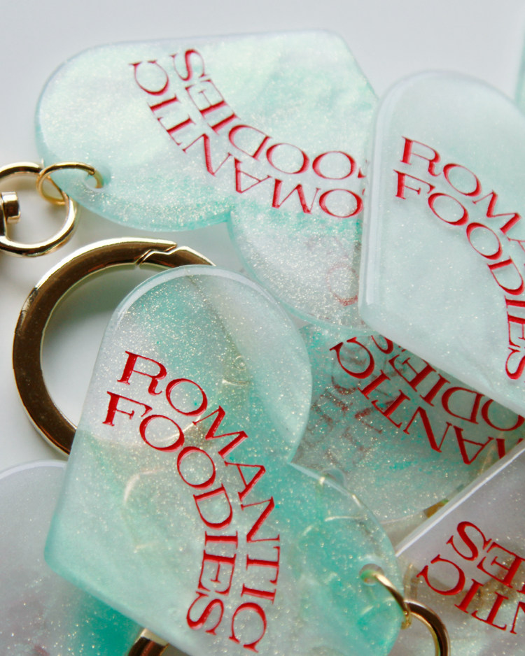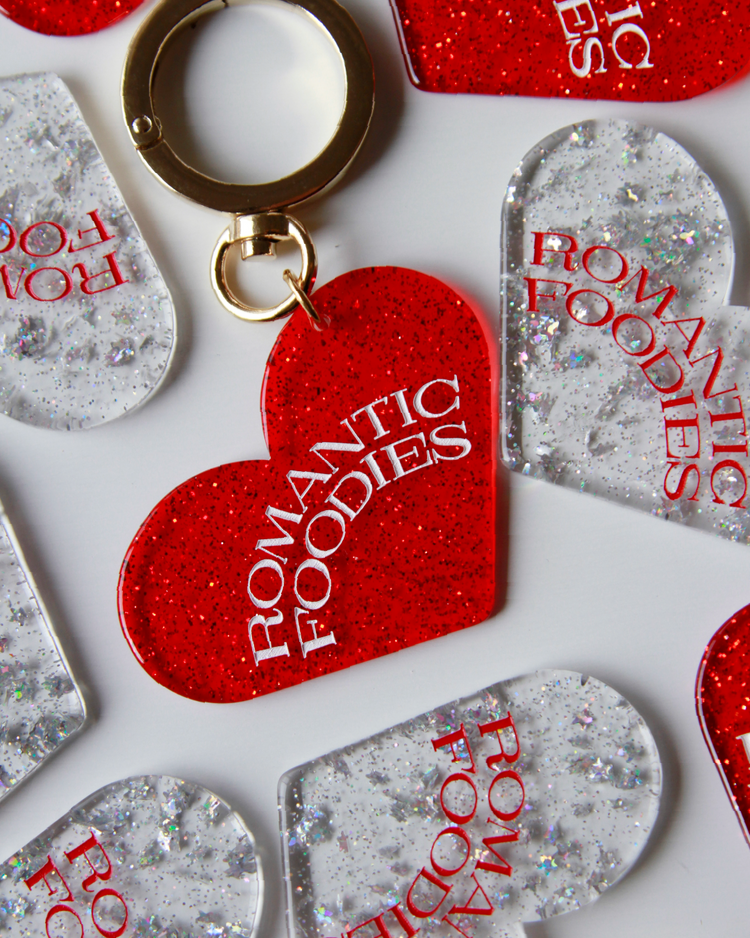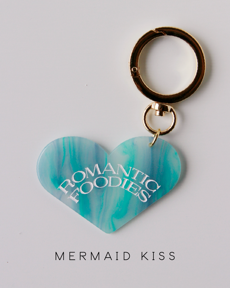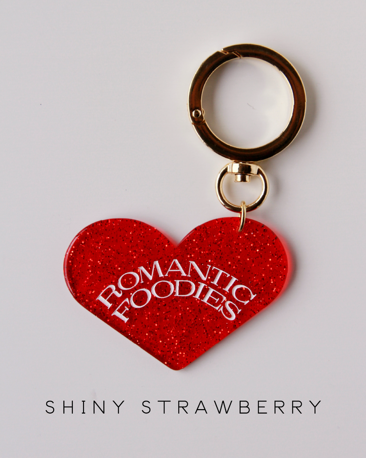 Romantic Foodiesでは資源の循環を行うリユースデザインアイテムを提案します。ハートのチャームは、国内の老舗アクリル工場で、製造過程で廃材になってしまうアクリル板の切れ端を再利用したオリジナルデザイン。