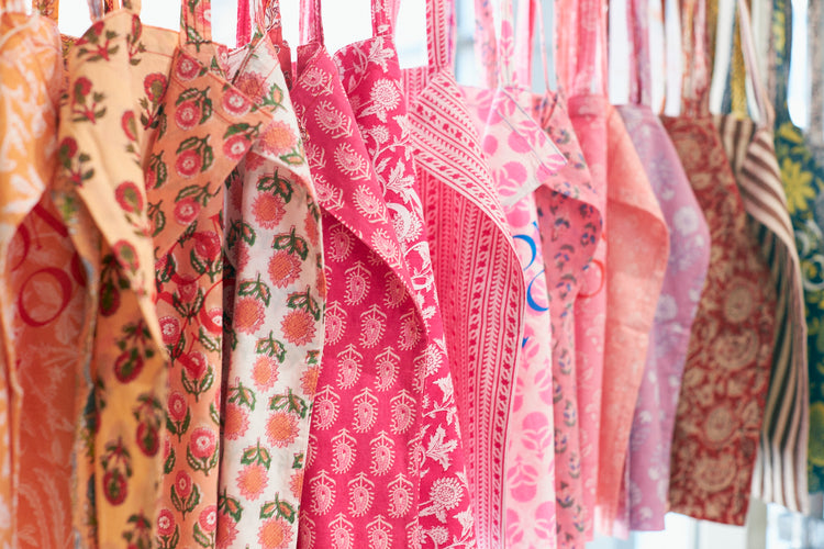 ディレクター自らがインド現地にてセレクトした、伝統工芸「ブロックプリント」の生地を使用した限定コレクション。ブロックプリントの歴史は古く、 手彫りの木版を使い、布にインクを押し付けるインドならではの伝統工芸です。