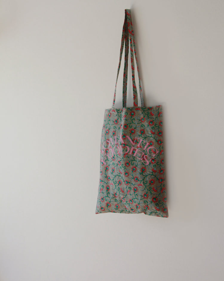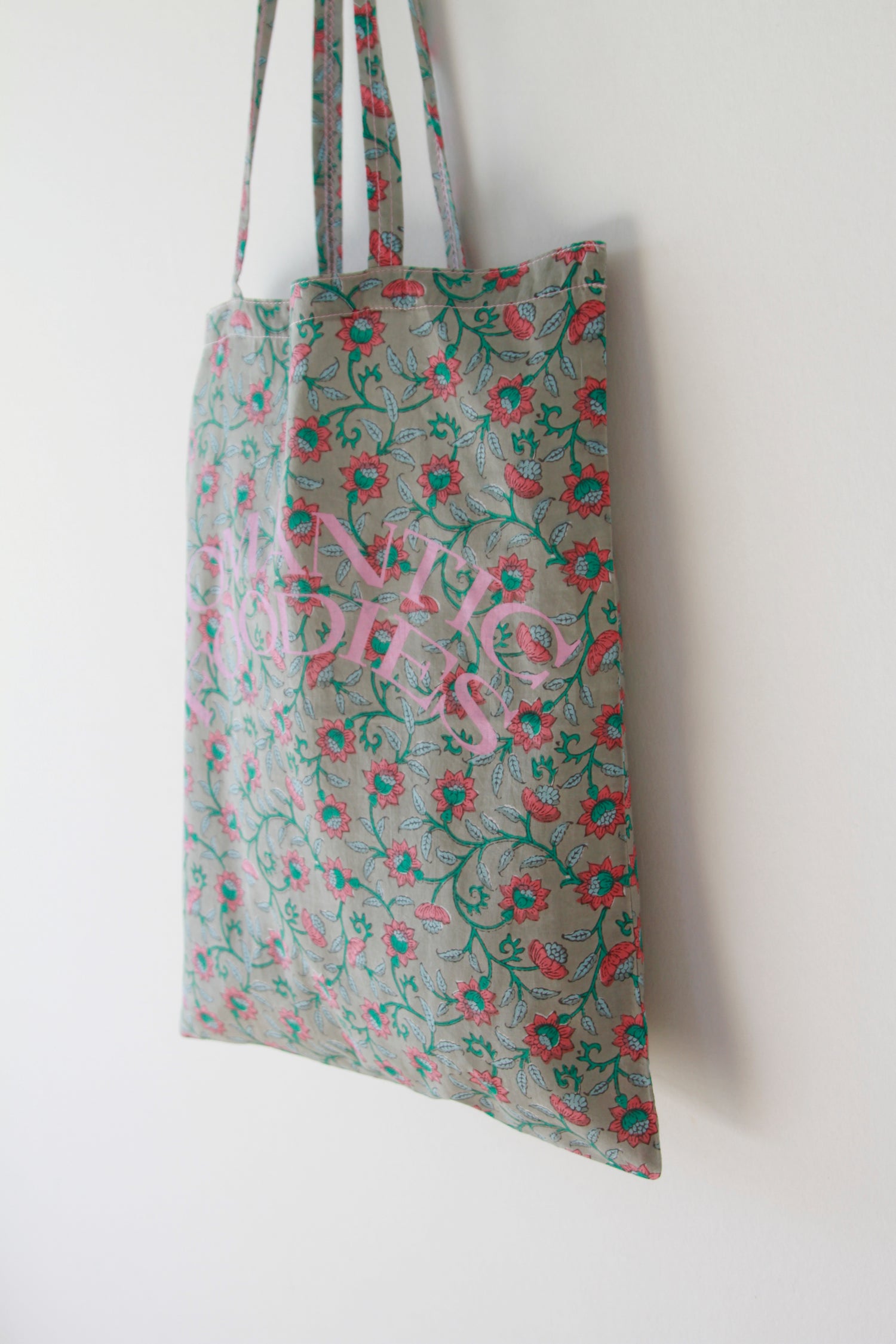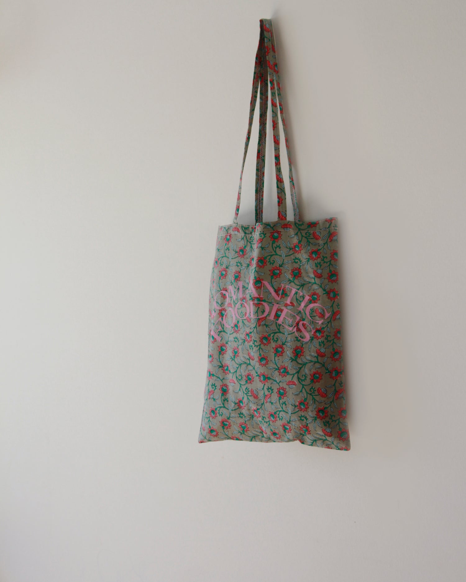 インドにて厳選セレクトした生地は、岡山県の工場にて縫製しています。ロゴは、シルクスクリーンによるハンドプリント。ステッチがポイントの持ち手は、ジーンズのベルトループを縫う専用ミシンで、ひとつひとつ丁寧に縫製しています。さらに、ウォッシュ加工で、ナチュラルな風合いに仕上がります。
