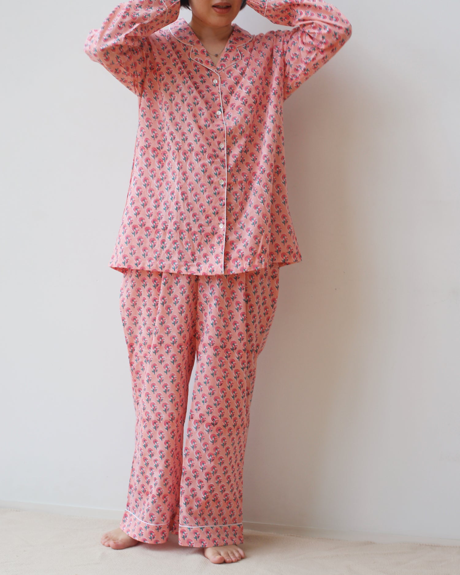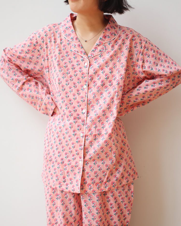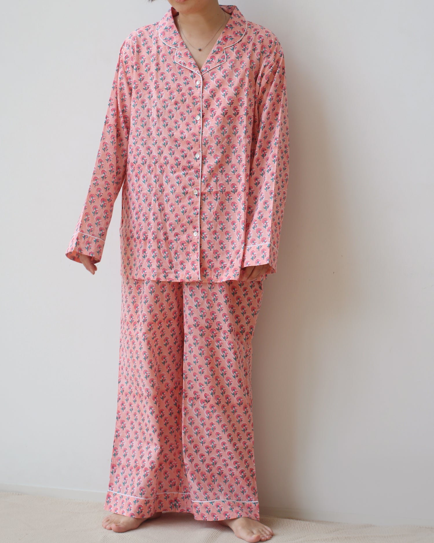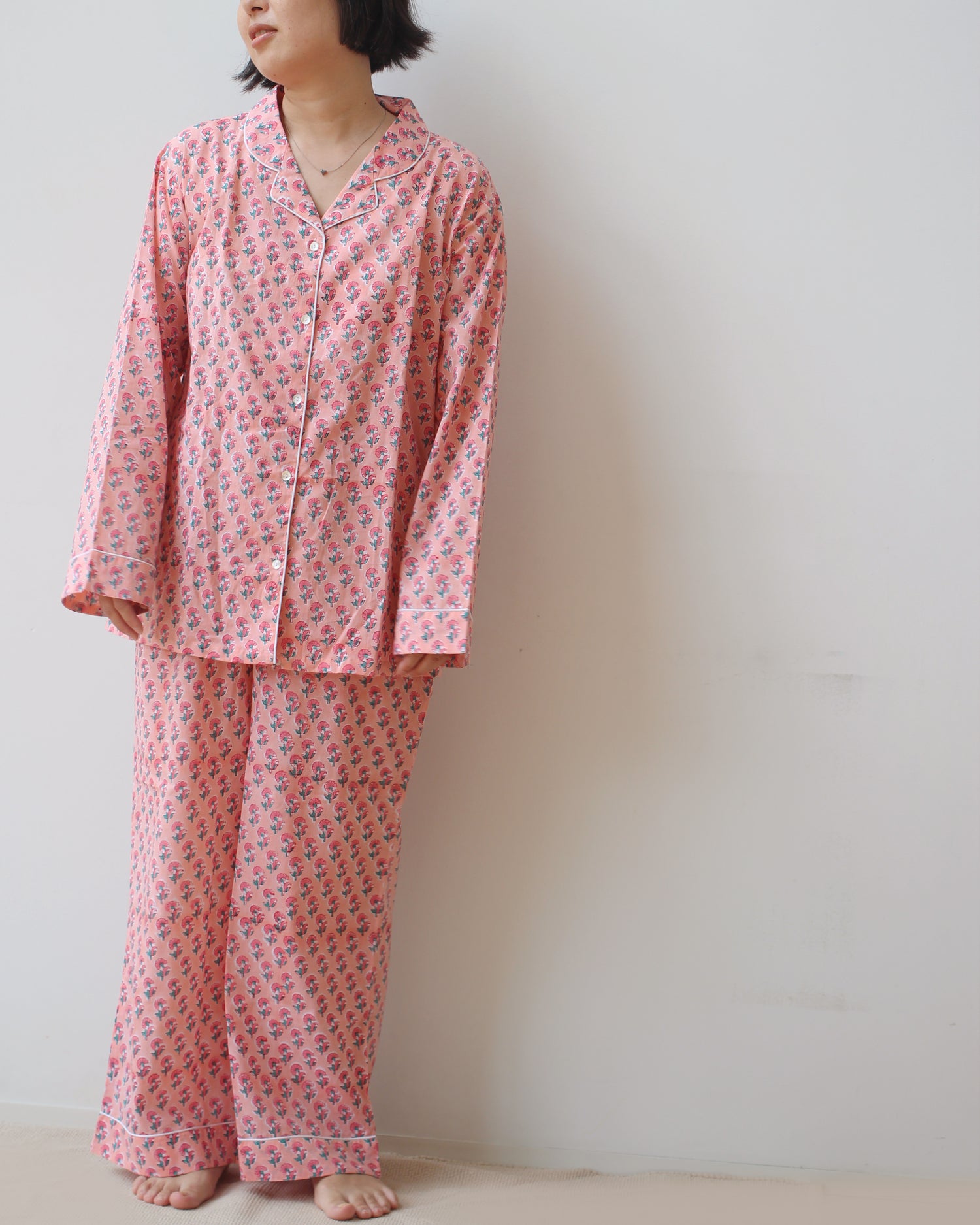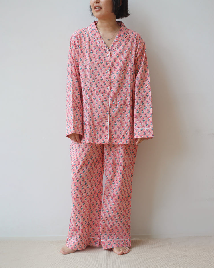 「実は洋服よりも着る時間の長いパジャマ。普段着とは違って、パジャマだからこそ、ひとの目を気にせずに、思いっきり自分の好きな柄に包まれよう。そんなちょっとした贅沢を提案します。何より伝えたいのは、インド出張中にわたし自身が着用し、虜になった、とろけるような着心地。ぜひ、おためしください。」urara