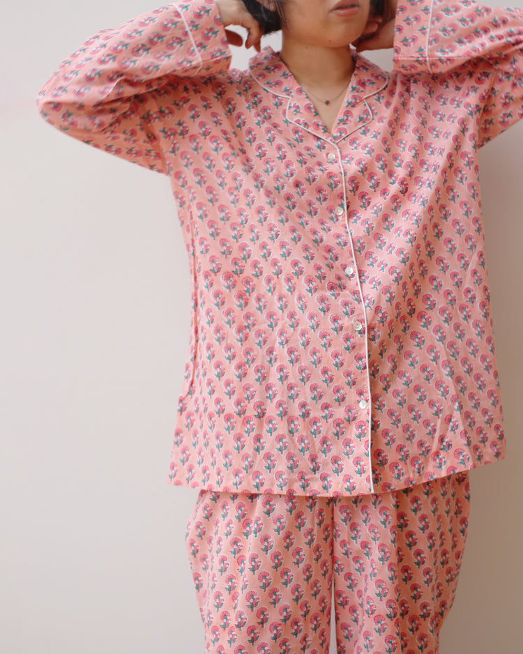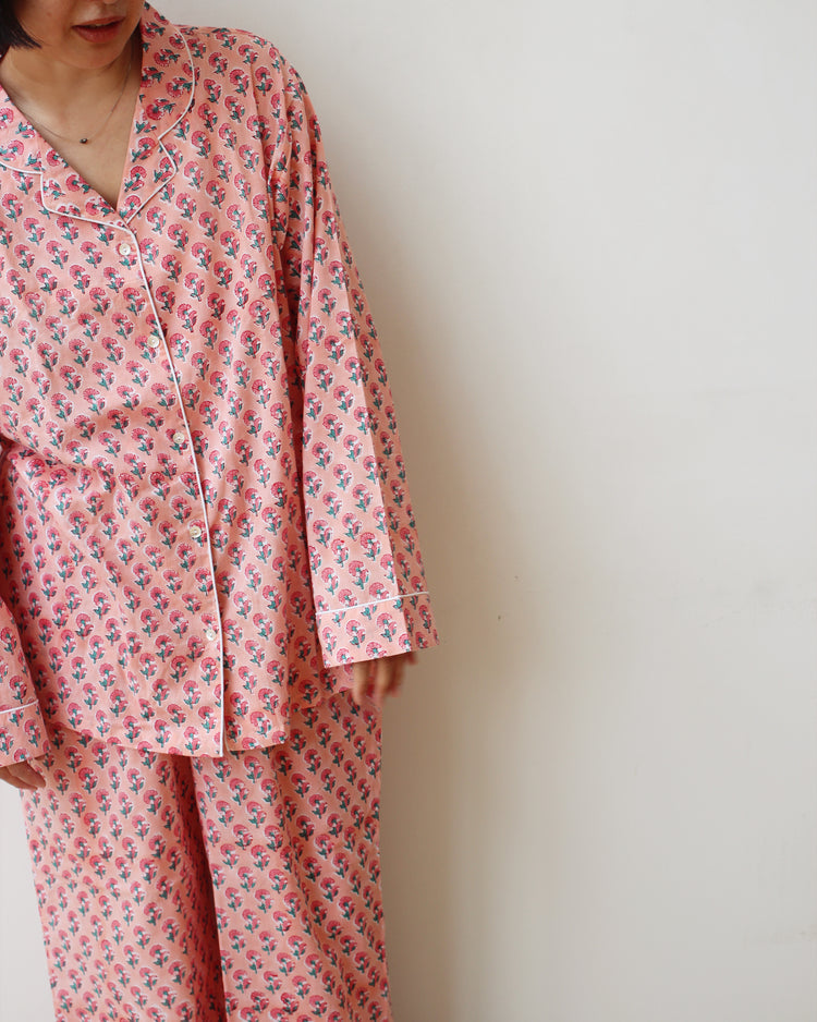 「実は洋服よりも着る時間の長いパジャマ。普段着とは違って、パジャマだからこそ、ひとの目を気にせずに、思いっきり自分の好きな柄に包まれよう。そんなちょっとした贅沢を提案します。何より伝えたいのは、インド出張中にわたし自身が着用し、虜になった、とろけるような着心地。ぜひ、おためしください。」urara