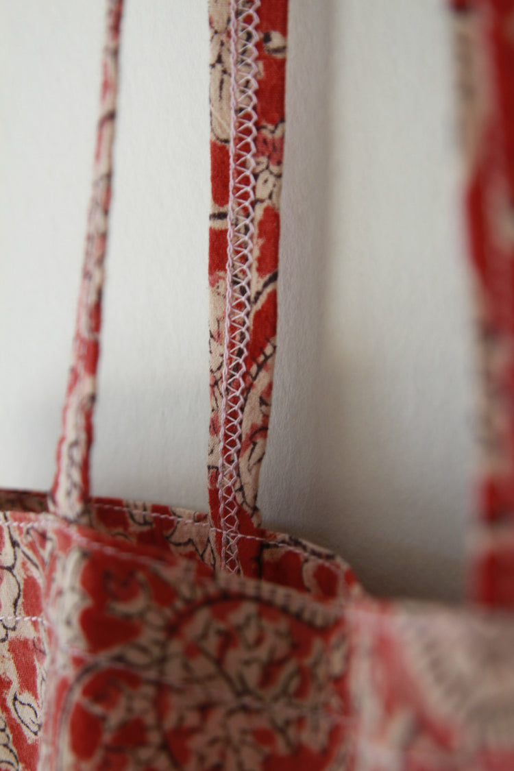 インドにて厳選セレクトした生地は、岡山県の工場にて縫製しています。ロゴは、シルクスクリーンによるハンドプリント。ステッチがポイントの持ち手は、ジーンズのベルトループを縫う専用ミシンで、ひとつひとつ丁寧に縫製しています。さらに、ウォッシュ加工で、ナチュラルな風合いに仕上がります。